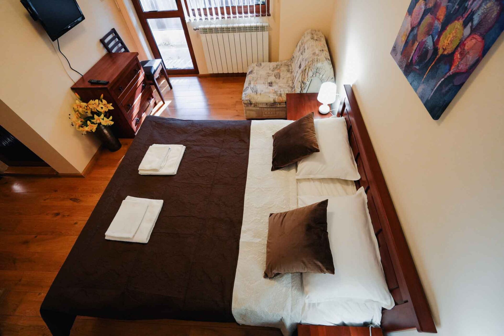 - Удобства: Безплатен Wi-Fi, Климатик, Собствена баня и тоалетна, Телевизор